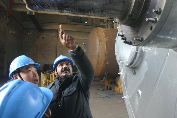 图为12月24日,德国巴玛格公司检验师Rao先生在现场检验的情景。