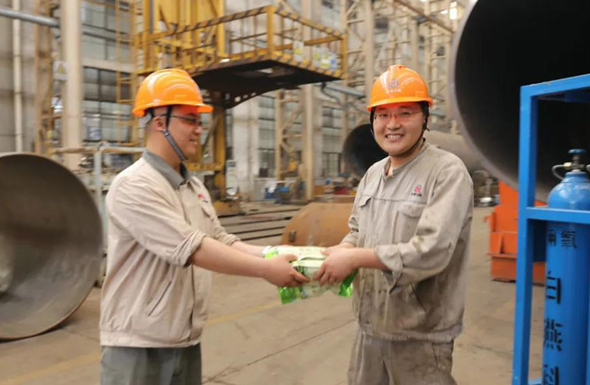 夏日炎炎,烈日当空,进入6月份机械公司生产任务逐渐繁忙起来。公司领导心系奋战在生产一线员工,月初就每天为一线员工配送了冰糕、西瓜和绿豆汤等降温解暑的用品。