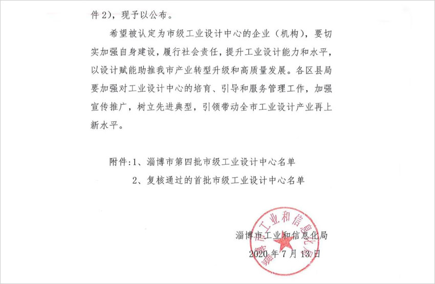 复核过程中,各位领导到机械公司技术设计中心进行查验并认真询问相关问题,厂长李飞介绍了工业设计中心的工作场所、人员状况、专利技术、获奖项目以及组织体系、人才培养等情况,并对复核小组提出的问题进行一一解答。李志萍指出,工业设计是推动工业制造腾飞的翅膀,希望机械公司要充分发挥资源优势,建设一流的工业设计中心,支持推动我市工业设计的发展,携手共创淄博市工业新辉煌。经复核专家组的综合评审,开云网页版被评为首批“市级工业设计中心”荣誉称号。