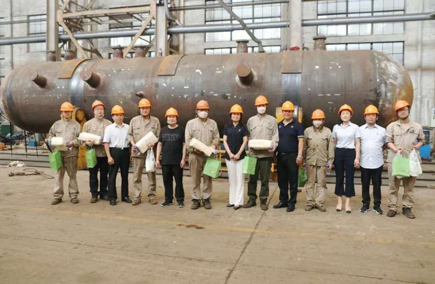 时值高温酷暑。由于近期车间加温消氢设备较多,一进入车间工作现场,令人感到闷热难当、酷暑难耐。然而仍有那么多一线职工坚守岗位,辛勤劳作。慰问现场,区总工会领导将清凉物资送到正在满身汗渍依然坚守在高温生产工作的员工手中。感谢大家的辛苦付出,叮嘱他们在认真工作的同时,更要关注身体健康,高温天气要注重劳逸结合,安排好作息时间,为机械公司建设做出更多的贡献。同时要求各相关单位要落实好各项高温季节劳动保护措施,积极做好防暑降温后勤保障和夏季安全生产工作,切实维护职工的健康利益,让在高温下工作的一线劳动者安全、健康的度过夏天。
