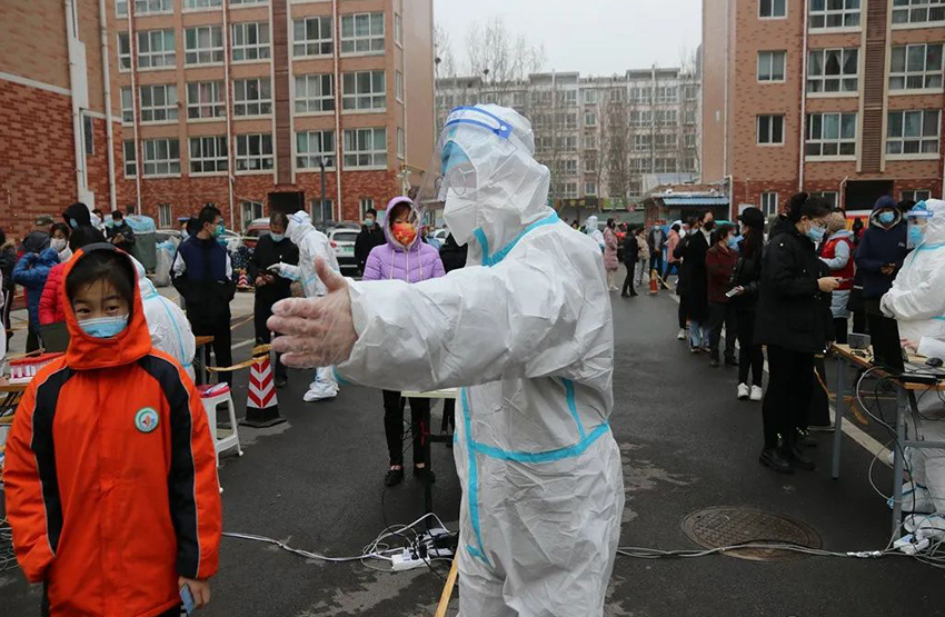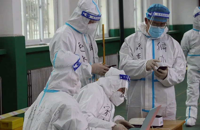2022年3月19日凌晨四点,气温低至-4℃,同学们早已经起床,第一时间赶往辛店街道办,接受统一部署。他们被分别安排到了牛山社区、青青家园、馨香园等六处核酸检测点。由于身穿防护服的原因,同学们只能不吃不喝直到本次核酸检测全部完成。这是一次意志的考验!