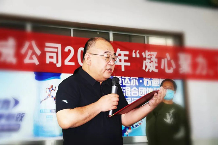 集团党委书记焦冲作重要讲话,他对机械公司旋压车间成功入选“山东省工人先锋号”表示祝贺,这是省一级工会组织对机械公司劳模精神、劳动精神、工匠精神的充分认可,更是对机械公司广大干部职工的一次激励,希望全体干部职工干在实处、勇立潮头,推动公司持续健康发展!更希望借助这次团建活动的机会,培养对体育运动的兴趣,以赛事为牵引,带动广大职工参与到体育运动中去,利用空闲时间,掀起健身浪潮。同时,希望活动组委会周密组织活动,保障得当,希望全体裁判员及时、客观、公正,希望各位运动员赛出风格、赛出水平、赛出团结,取得理想成绩。